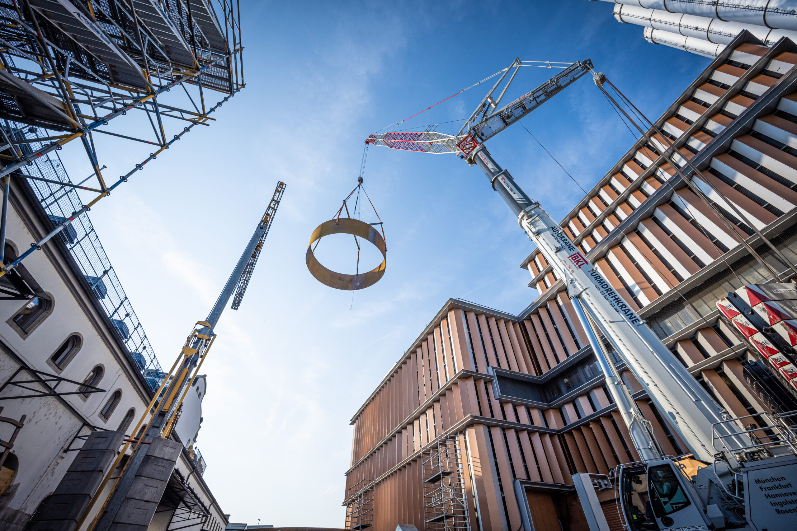 The pressure storage tank has a capacity of 2,000 m³, operates at 5 bar overpressure and temperatures of up to 110 °C. With a height of 20 meters and a diameter of 14 meters, it weighs up to 3,000 tons when in operation. Twenty-four bored piles were driven 13 meters deep for the foundation – a technical masterpiece for a stable, inner-city energy supply.